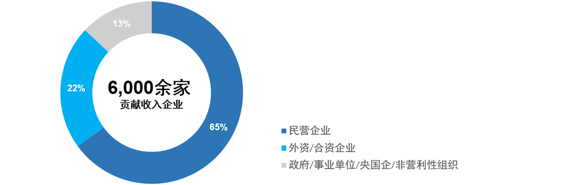 近16,000家平台认证企业,在原有服务大客户的基础上,新技术产品围绕区域市场 的长尾需求,不断为公司带来新的客户群体。